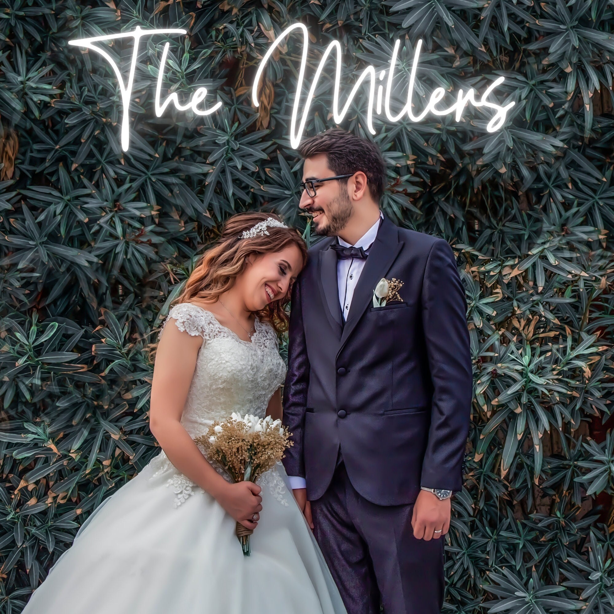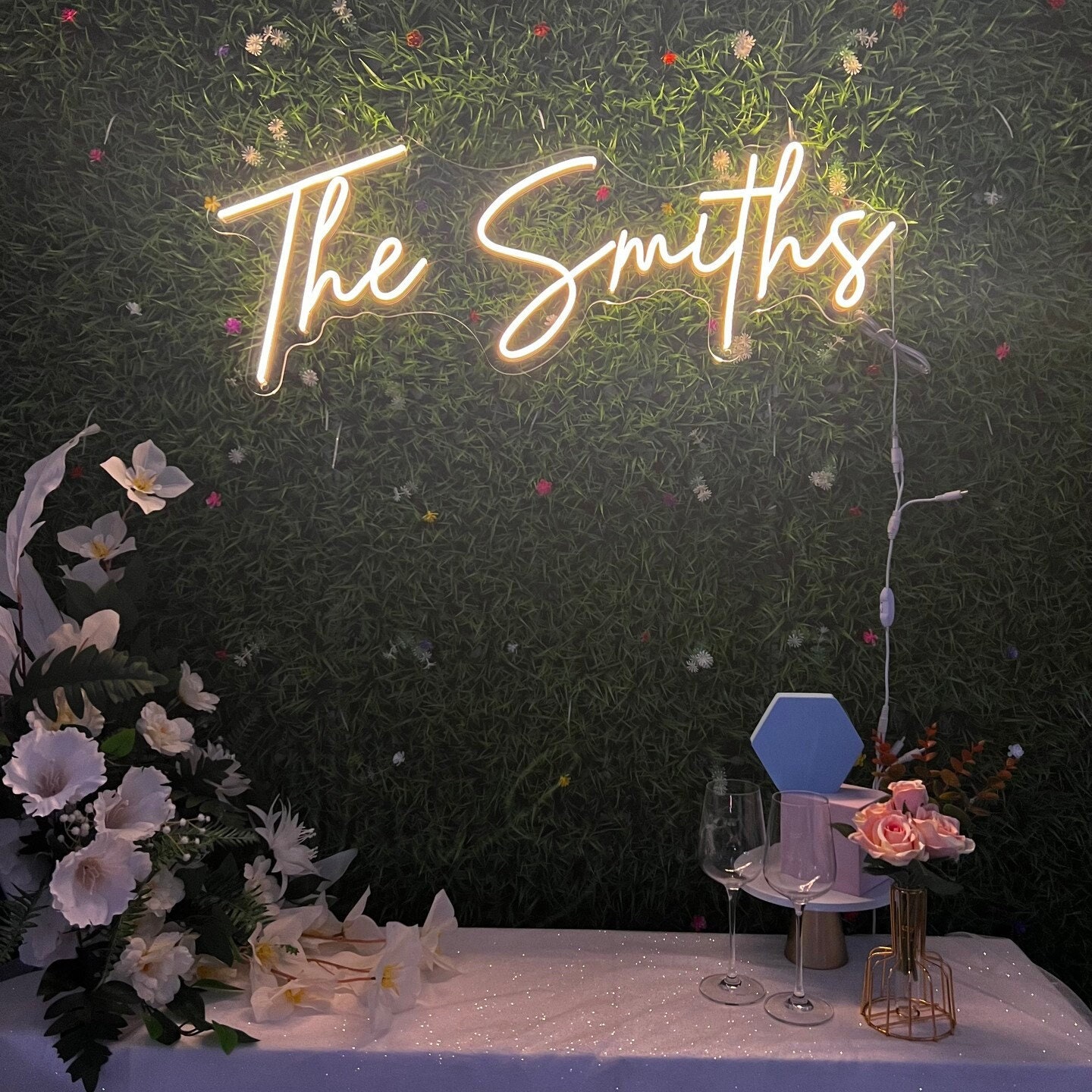 Wedding Neon Sign | Custom Last Name Neon | Wedding Gift | Wedding Decor | Grass Wall Backdrop | Family Name Neon Sign | LED Home Decor